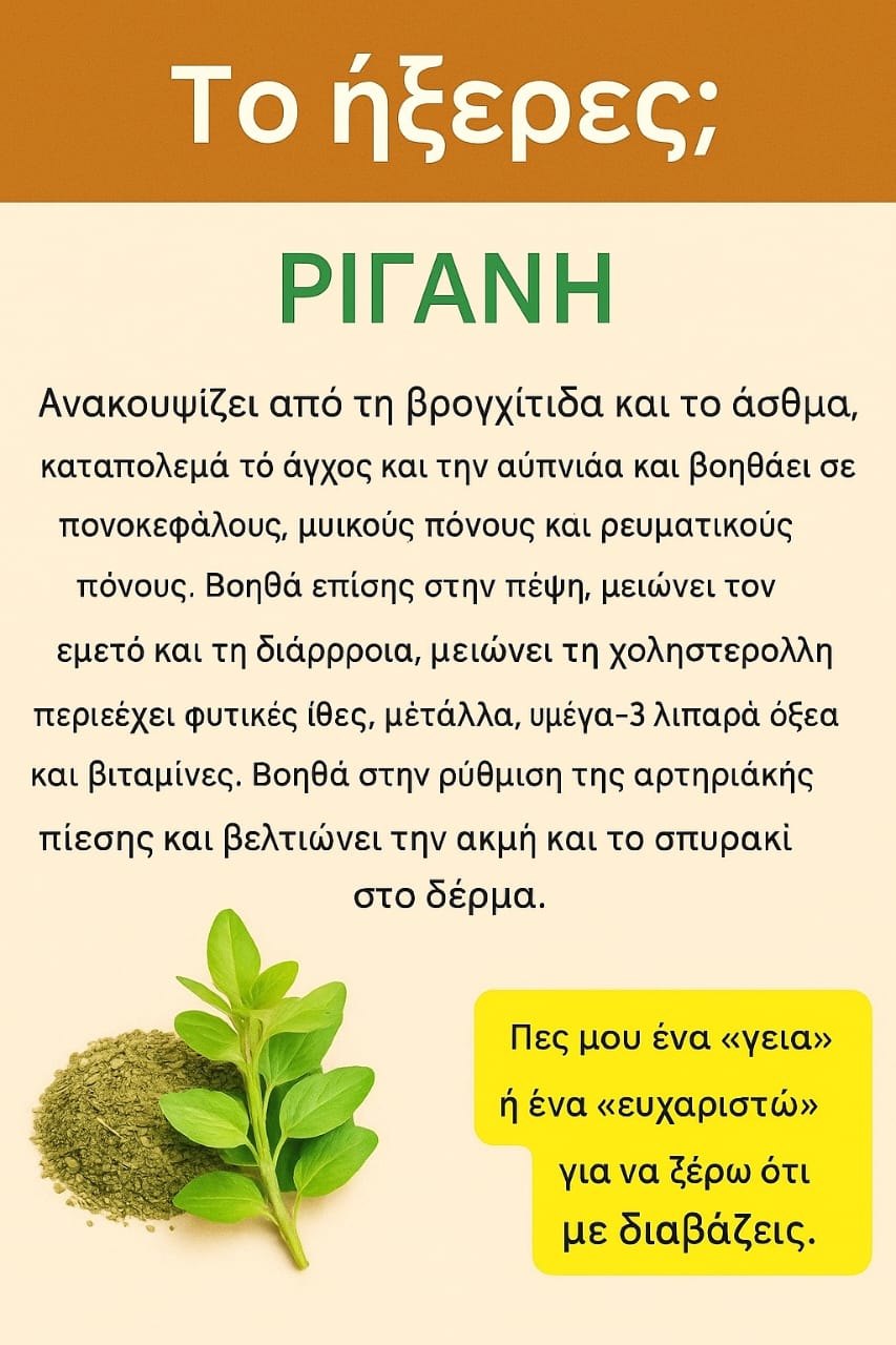 Η ρίγανη αποτελεί πυλώνα της φυσικής ιατρικής εδώ και αιώνες, καθώς χρησιμοποιείται από αρχαίους πολιτισμούς για την καταπολέμηση λοιμώξεων, την ανακούφιση από τον πόνο και τη βελτίωση της συνολικής υγείας. Οι δραστικές ενώσεις της, όπως η καρβακρόλη, η θυμόλη και τα αντιοξειδωτικά, την καθιστούν ισχυρό σύμμαχο για το σώμα και το μυαλό. Είτε σε τσάι, είτε σε λάδι, είτε ως καρύκευμα, η ρίγανη είναι ένα δώρο της φύσης που συνδυάζει γεύση και θεραπεία. Είστε έτοιμοι να ανακαλύψετε τα οφέλη της και να μεταμορφώσετε τη ζωή σας;