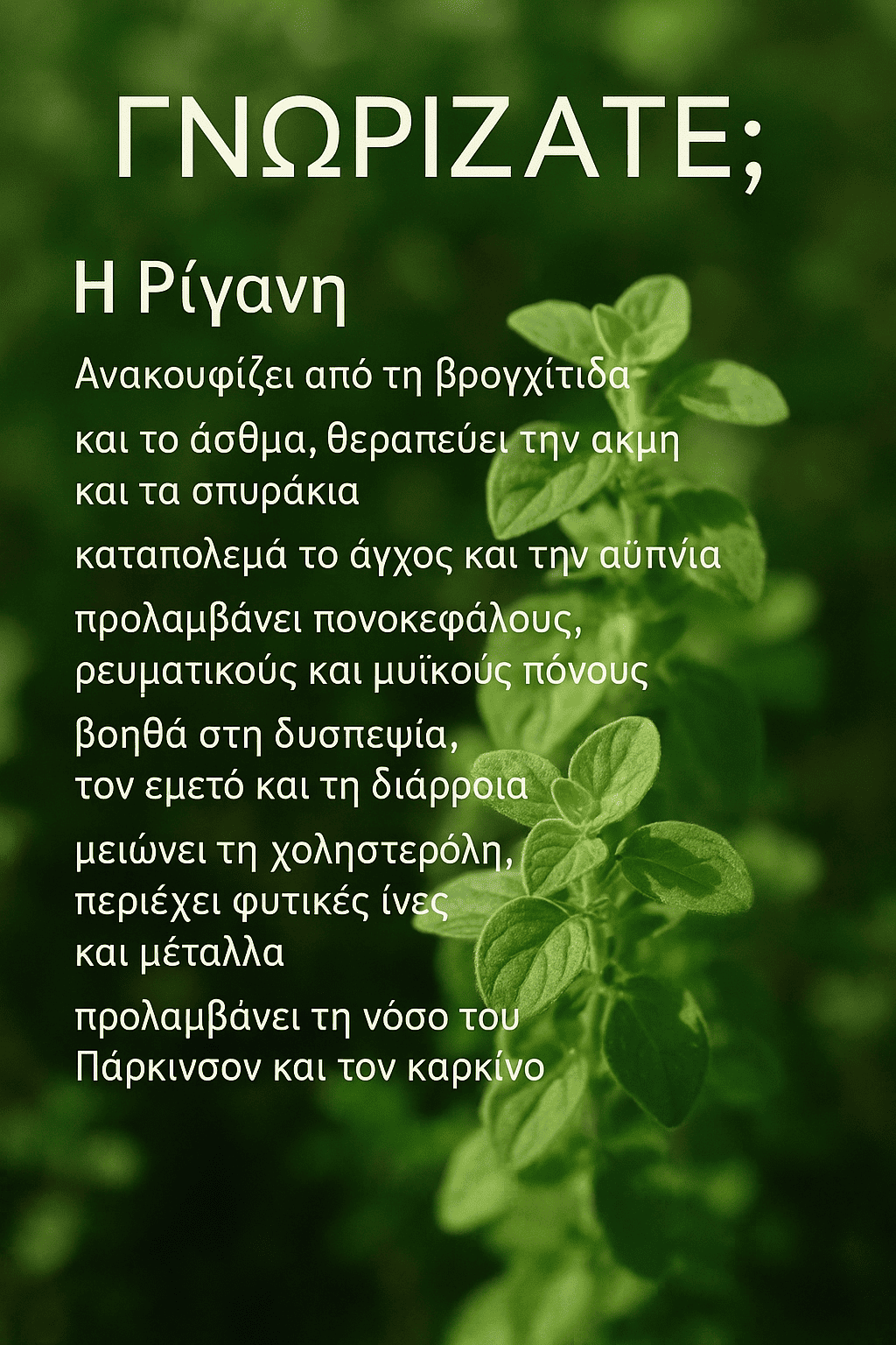 Τσάι Ρίγανης με Άδειο Στομάχι: Καθαρίστε το Σώμα σας και Ενισχύστε την Υγεία σας Η ρίγανη είναι ένα πολύ δημοφιλές αρωματικό φυτό στη μαγειρική, αλλά λίγοι γνωρίζουν τις τεράστιες φαρμακευτικές του δυνατότητες. Το τσάι ρίγανης, όταν καταναλώνεται με άδειο στομάχι, γίνεται ένα ισχυρό φυσικό φάρμακο που καθαρίζει το σώμα, βελτιώνει την πέψη, μειώνει τη φλεγμονή, … Read more